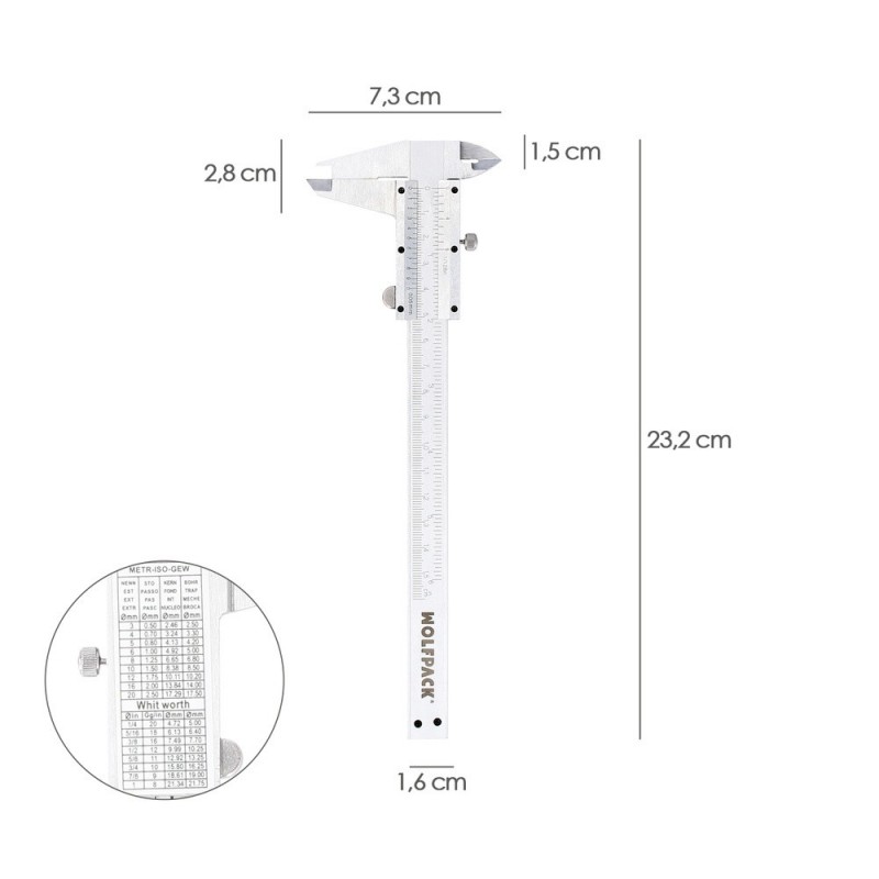 calibre aço inoxidável 150 mm. Linha profissional de alta precisão Wolfpack