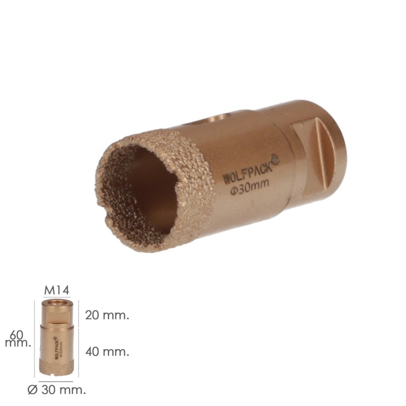 Corona Diamante Para Amoladora Ø 30 mm. Conexión Rosca M14. Corte Seco WOLFPACK LINEA PROFESIONAL