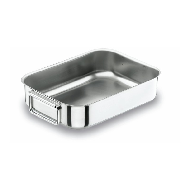 Rustidera com alças, feita de aço inoxidável e disponível em até 6 tamanhos diferentes, esta rustidera é adequada para assar qualquer tipo de assado, massa e sobremesas. Equipado com alças dobráveis, que são coletadas e que facilitam a extração do forno e transporte.