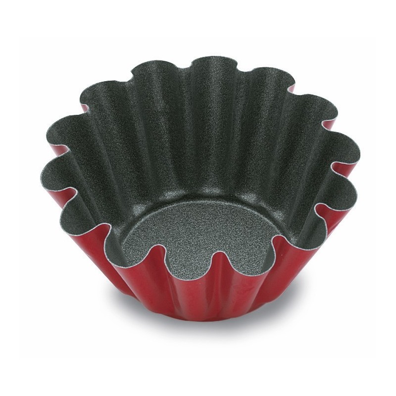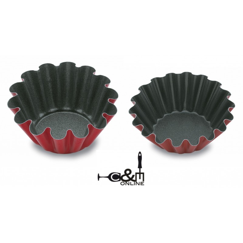 Mofada madalenas, feita de alumínio antiaderente que facilita a separação da peça após o cozimento, e disponível em 4 tamanhos diferentes: diâmetro 5, 6 e 9cm. e em um formato alto de 8cm. Disponível em pacote de 6 unidades.