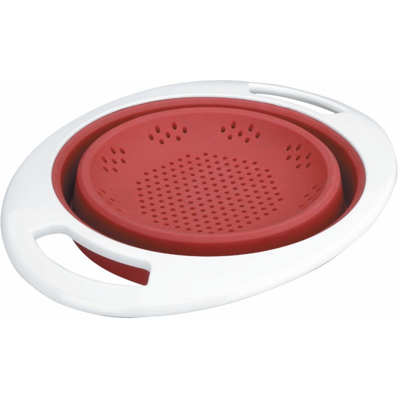 Coador de silicone de 24cm com diâmetro e capacidade de 4 litros ideal para esticar ou drenar sua comida. Equipado com alças para uma aderência mais segura e facilitar a drenagem.