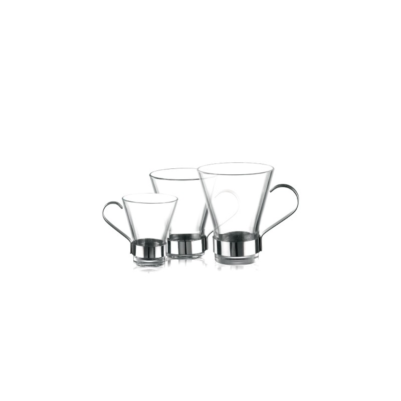 Caneca Ypsilon com alça cromada disponível em três tamanhos diferentes: