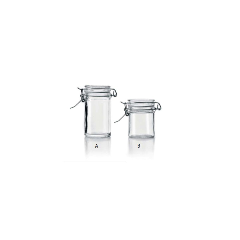 Mini frascos de vidro redondos disponíveis em dois tamanhos diferentes: