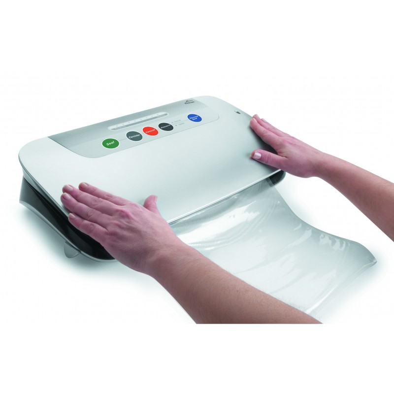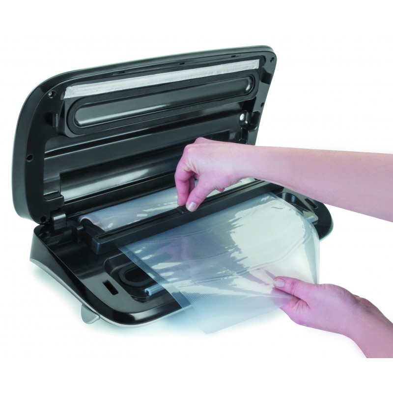 Maxi aspirador de vácuo, com um poder de sucção de 9 litros por minuto e um poder de 110W, este empacotador lhe fornecerá embalagens de vácuo profissionais, estendendo assim a vida útil de sua comida. Remove todo o oxigênio do saco impedindo a deterioração dos alimentos armazenados lá. Guarde suas frutas, legumes, carnes, peixes... até 3 vezes mais do que sem um sistema de vácuo. Fácil limpeza e manuseio.