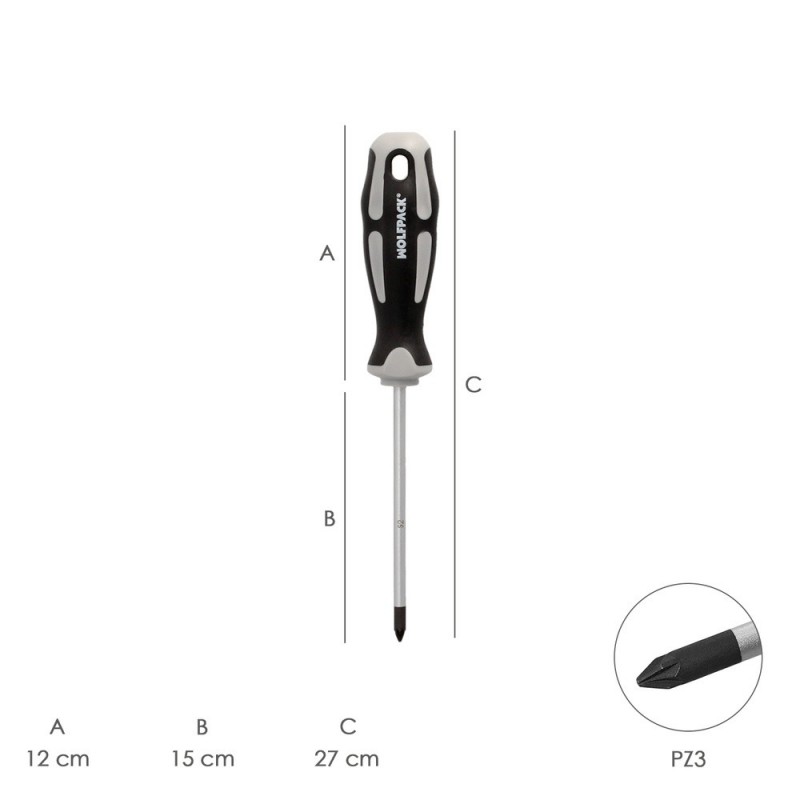 Pozidriv Steel Aço S2 Mango Bimaterial Aço. PZ 3 x Ø 8 x 150 mm Medida. DIN5262. Wolfpack Linha Profissional