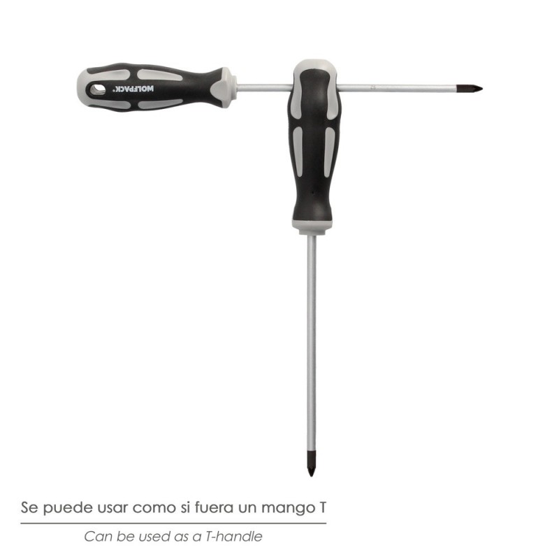 Pozidriv Aço Aço S2 Mango Bimaterial Aço. PZ 3 x Ø 8 x 150 mm Medida. DIN5262. Linha profissional de Wolfpack