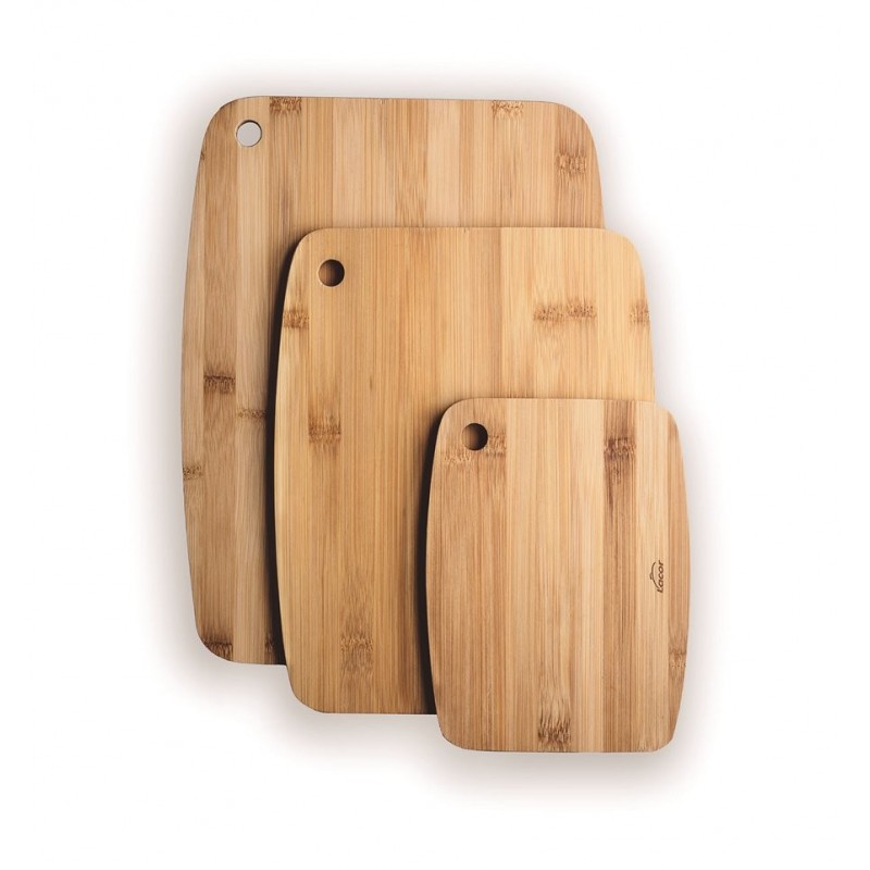 Defina mesas de corte de bambu. Três tabelas de corte de várias medidas, em madeira com tratamento antibacteriano. Face dupla, mantém a borda das facas. De madeira com um tratamento antibacteriano de alta resistência. Essas são placas reversíveis, com duas superfícies de corte que ajudam a manter a borda das facas.Com seu corpo de bambu, as tábuas de corte são leves, muito resistentes e fáceis de limpar. Eles incorporam um buraco para pendurar e facilitar o armazenamento.Dimensões:20 x 15 cm28 x 22 cm33 x 25 cm