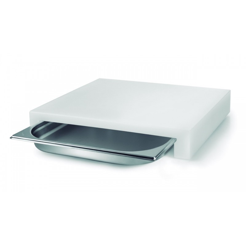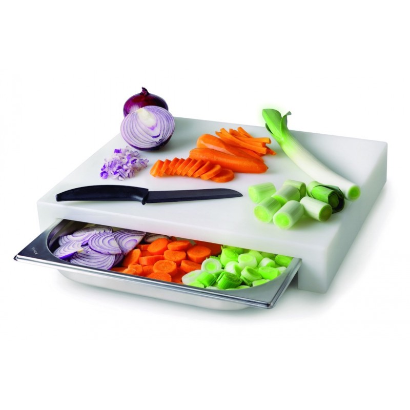 Mesa de corte com um cuvet GN 2/3 de aço inoxidável oculto e completamente removível. Robusta e alta durabilidade. Seguro, leve e higiênico, não absorve a umidade e evita a proliferação de bactérias Graças à sua superfície macia, proteja as folhas de facas Balde removível (35.4x32.5x4 cm) para coletar alimentos cortados Cubeta adequado para o forno (até 250ºC) e a máquina de lavar louça Os pés não deslocam, garantem a estabilidade da mesa durante o corte Cortes e arranhões resistentesTabela de referência (cm) cubeta (cm) cubeta (l) 60593 41x34x6.5 35.4x32.5x4 3.5