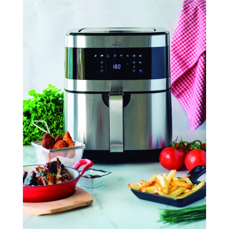 lacor ecofry ar fritado caseiro e saudável: fritura projetada para fritar, assar, assar e calor sem usar óleo. Uma maneira saudável de fritar sem perder sabor. E saudável: batatas fritas, asas, pizza, etc. garantindo resultados surpreendentes. Todas as funções têm um tempo de pré -aquecimento para obter melhores resultados. Tecnologia Totalcook: distribui o calor uniformemente através do ar quente em alta velocidade. Grande capacidade: 5,5 litros (cesta). Intuitivo e muito fácil de usar: graças à tela digital, você pode ajustar o tempo (até 60 minutos), a temperatura (de 40ºC a 200ºC.) E os 8 programas predefinidos. TotalaSafe: A caixa e a alça permanecem frios enquanto cooperavam. Shake Indicator. Recipiente/cesta removível com 100% livre de PFOA. Inclui um livro de receitas exclusivo e projetado pela Lacor para os 8 programas em 3 idiomas. Base não -SLIP: garante a estabilidade máxima durante a operação. Limpeza fácil: acessórios adequados para a máquina de lavar louça. CARACTERÍSTICAS TECNICAS Poder: 1500 W Tensão: 220-240 v / 50-60 Hz Capacidade preta: 5,5 L Capacidade do Cubet: 6,5 L Dimensões: 41 x 30 x 34,5 cm Peso: 5,40 kg Temperatura: 40-250 ºC Timer: 1-60 min A fritadeira do Lacor Ecofry Semipropry é o aparelho. Em traços amplos, ele permite fritar sem óleo e, portanto, obtendo frito frito fritoso e menos saudável do que aqueles que podemos preparar em uma panela ou fritadeira convencional. A operação é simples, uma vez que o dispositivo simula a operação de um forno de convecção, o ar quente circula uniformemente e em alta velocidade através da cesta de fritadeiras. Os alimentos fritos são muito mais saudáveis, porque menos calorias adicionais (ou até zero calorias) são adicionadas ao fritar. Fritar no ar é mais rápido, pois, diferentemente do forno, a fritadeira pré -aquecida é muito mais rápida. Deve -se lembrar que a maneira ideal de consumir alimentos é cozida no vapor, cozida, assada ou até cru. Neste último caso, o petróleo deve ser consumido para manter todas as suas propriedades antioxidantes. É por isso que as fritadeiras de ar, que funcionam semelhantes a um forno, são uma excelente maneira de cozinhar alimentos de uma maneira saudável, mantendo uma textura atraente para todos os paladares.