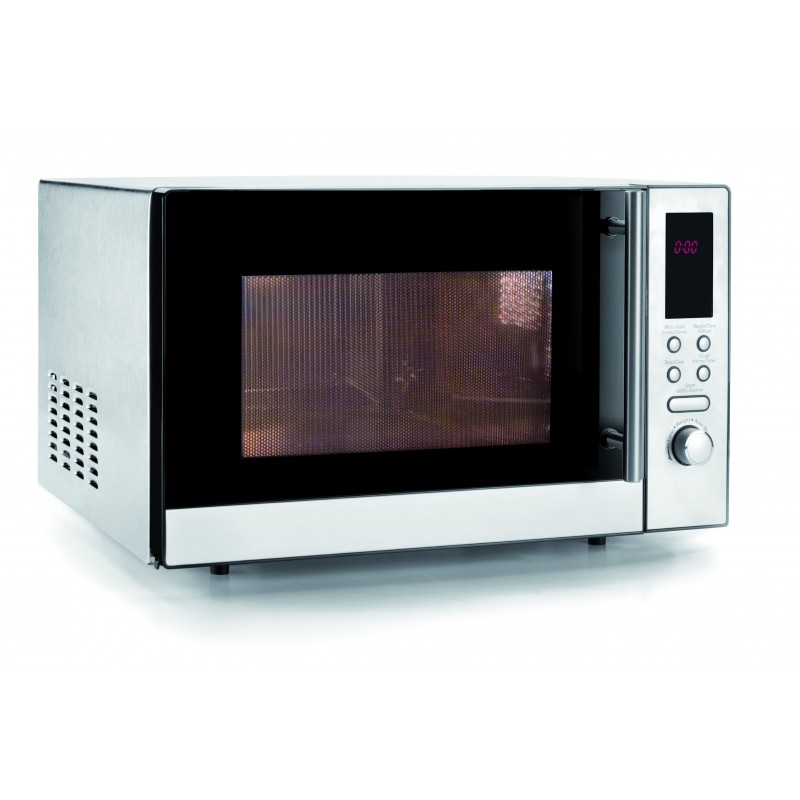 Especialmente projetado para uso intensivo, tem temporizador, relógio, mesa giratória de 27 cm, grade e função comby. - POTÊNCIA DE IN/OUT: 1250W/800W