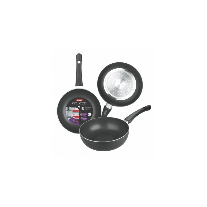 La serie Inducta de Ibili está formada por piezas de aluminio de 3 mm de espesor rematado con una doble capa antiadherente y un mango ligero de baquelita.Los fondos de la serie Inducta son de acero inoxidable y están especialmente adaptados para inducción y vitrocerámica, si bien pueden utilizarse con toda clase de cocinas, incluidas gas y eléctrica.La sartén honda Inducta es una pieza versátil y sencilla centrada en la calidad-precio, perfecta para salteados y preparaciones con salsas o caldos. Está disponible en varios diámetros, entre 20 y 32 cm, para cubrir las necesidades de cualquier hogar.Referencia Diámetro (cm) Altura (cm) EAN 410420 20 7,2 8411922081695 410424 24 7,7 8411922080438 410426 26 7,8 8411922447941 410428 28 8,1 8411922080445 410430 30 8,3 8411922447958 410432 32 8,4 8411922080452