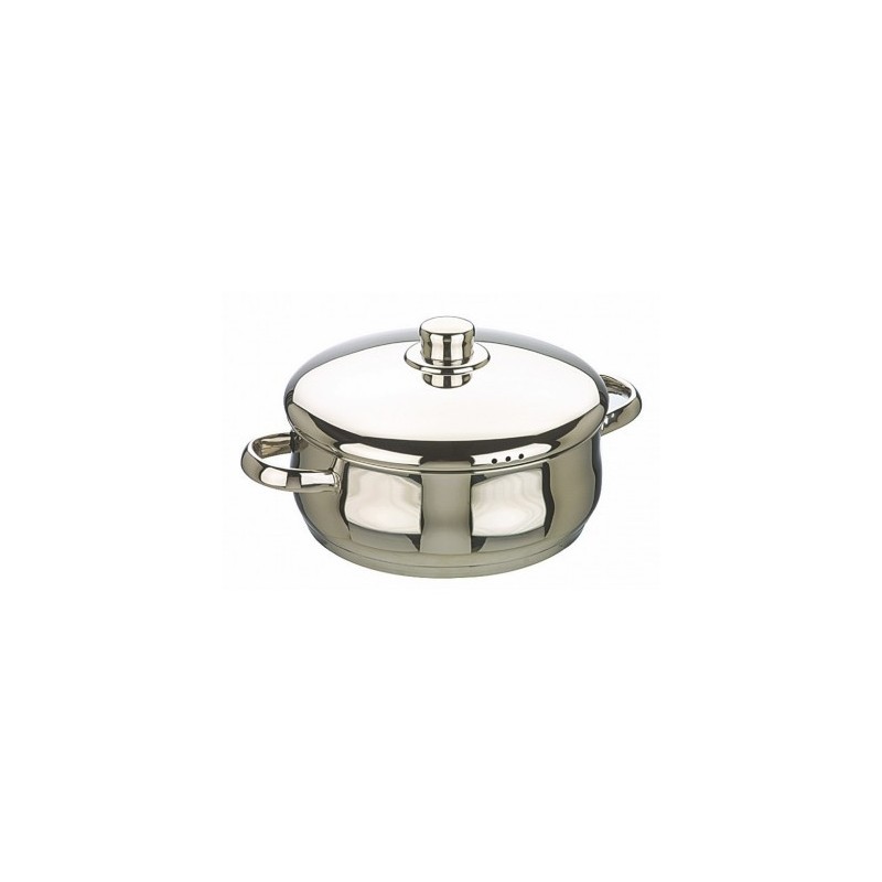 Cacerola bombada con tapa inoxidable de la Serie "Oslo" de Ibili® fabricada en su totalidad en acero inoxidable de Ley 18/10.Elegante y funcional. Una pieza básica e imprescindible que no puede faltar en su cocina. Asas metálicas que no comunican el calor.La tapadera dispone de tres orificios laterales que permiten que escape el vapor estando la cacerola completamente tapada.Fondo capsulado tipo sándwich: acero inox.-aluminio-acero inoxidable, que distribuye el calor uniformemente en toda su superficie y proporciona máxima eficiencia energética.Apta para todos los fuegos, incluidas las cocinas de inducción.Referencia Diámetro (cm) Capacidad (litros) EAN 662016 16 1,5 8411922202793 662018 18 2 8411922068962 662020 20 2,5 8411922202809 662022 22 3 8411922205602 662024 24 3,5 8411922202816 662026 26 5 8411922068979 662028 28 6,5 8411922202823 662032 32 10 8411922204476