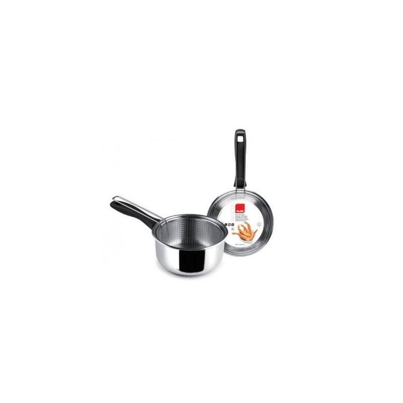 Fabricado en acero inoxidable 18%, mango de baquelita de tacto suave, de la marca Ibili®. Apto para todo tipo de cocinas, incluidas las de inducción.Cestillo inoxidable.Referencia Diámetro (cm) Altura (cm) EAN 666118 18 8,5 8411922438758