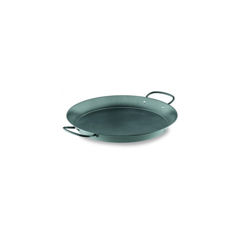 Lacor fabrica esta clásica paellera en acero, con el diseño de la paellera valenciana clásica. Su interior está provisto de un recubrimiento antiadherente de gran calidad y ecológico ya que, a diferencia de lo que sucede con los antiadherentes convencionales de teflón, en su fabricación no se utiliza PFOA (ácido perfluoroctánico); se reducen las emisiones de CO2 a la atmósfera y es más respetuoso con el medio ambiente. Con ello se evita que el arroz se pegue y se facilita la limpieza de la paellera.Este producto es apto para su uso en:- Cocinas eléctricas - Cocinas de gas - Cocinas vitrocerámicasLacor fabrica la paellera de acero antiadherente en 7 capacidades; puede escoger la que le interese en el desplegable al lado de la fotografía. Para ayudarle en su elección le ofrecemos estas indicaciones:Diámetro (cm)Raciones283325367409451250146019