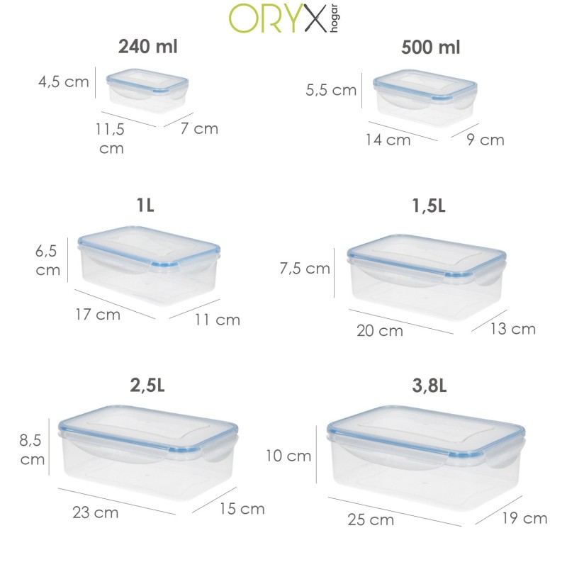 Juego Recipientes Cierres Hermeticos Plastico Rectangulares (6 Piezas) ORYX