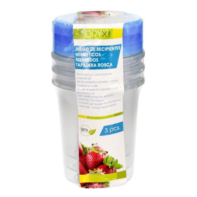 Juego Recipientes Plastico Redondos 1 Litro (Pack 3 piezas) ORYX