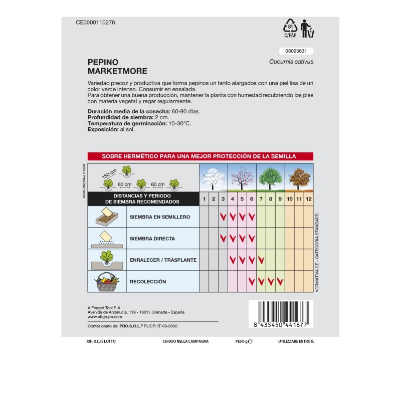 Segumas CUCUME MERCANDO (5 gramas) senções de vegeta, horticultura, Horticola, afetadas por Jardim. Saturnia