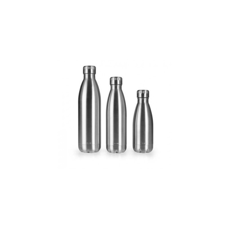 Esta botella es adecuada para llevar agua, zumos, café y bebidas frías o calientes. Es hermética y sin BPA. Mantiene las bebidas frías o calientes durante 8 ó 10 horas gracias a su doble pared. Fabricado en acero inoxidable con un diseño elegante y moderno.