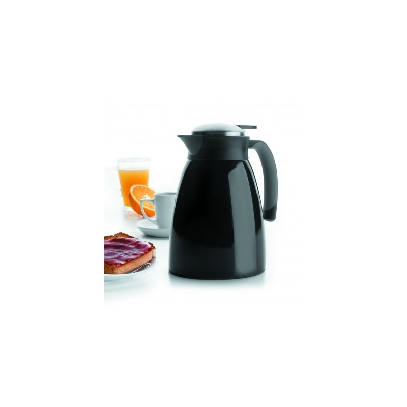 El termo es un utensilio con múltiples usos, nos permite conservar, entre otros, el agua e infusiones, ya sean frías o calientes.Este termo consta de un cuerpo de doble pared, fabricado en acero inoxidable La tapa aislante dispone de un pulsador de apertura que mantiene la temperatura y dispensa fácilmente las bebidas.La capacidad de este termo es de 1 litro y se fabrica en dos colores: blanco y negro.
