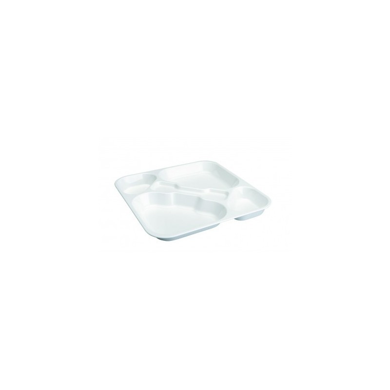Bandeja para autoservicio de policarbonato blanco de Lacor. Medidas: 33 x 33 cm. 5 compartimentos: 2 grandes, 2 pequeños, portacubiertos