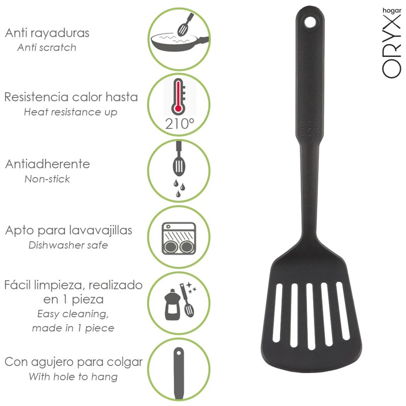 - Feito em nylon, luz e material resistente. Material semelhante ao silicone, pois ambos os materiais n absorvem odores ou sabores tamb podem ser usados ??em todos os tipos de pan