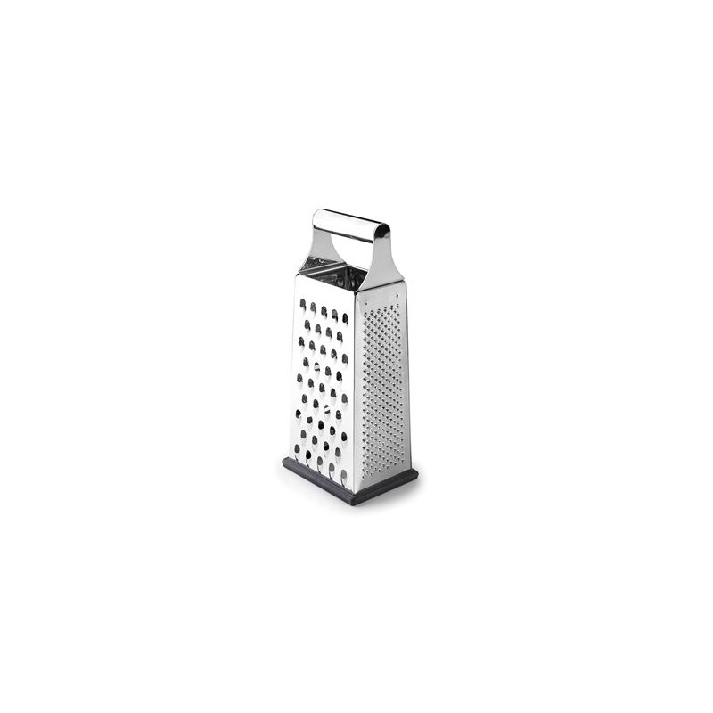 Nuevo diseño y super filo. Rallador de acero inoxidable. Este utensilio es imprescindible en cada cocina. Permite un corte clara y precisa. La escofina 4 caras es dotada de 4 rallados diferentes y permite así de cortar todo tipo de frutas y verduras.La asa gruesa durable y cómodo ofrece una buena cantidad de la estabilidad.Apto para lavavajillasDimensiones: 10,5x7,5 cm