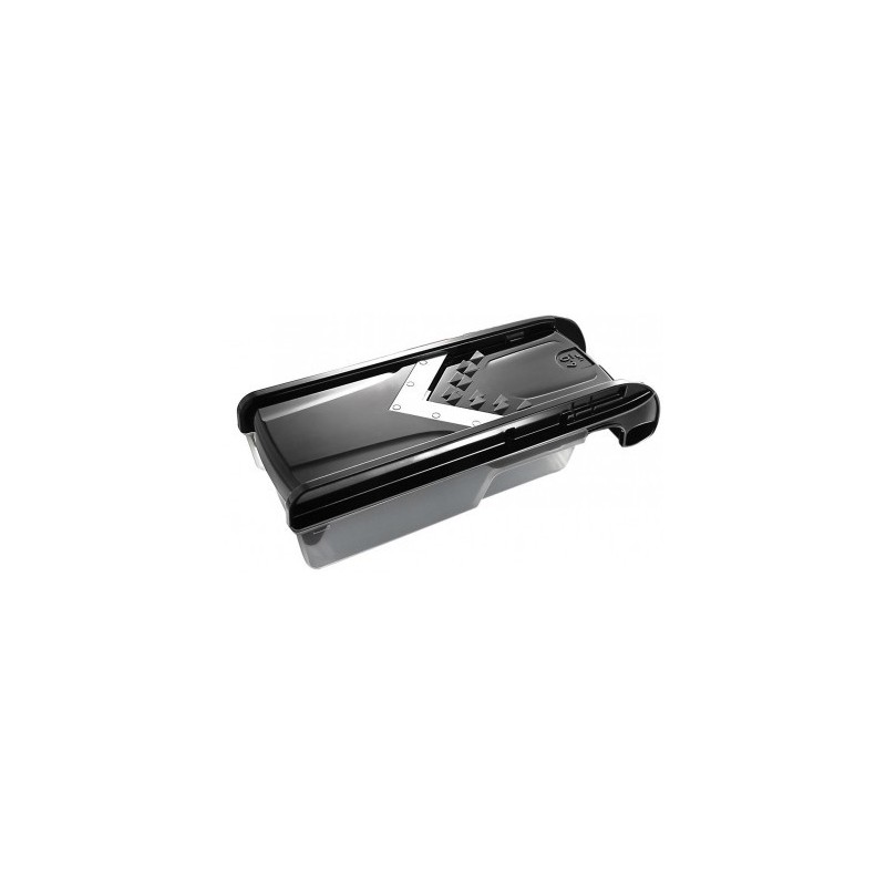 La mandolina en "V" de Ibili está especializada en cortar productos vegetales, ya sean frutas o verduras. Dispone de 5 cuchillas diferentes, todas ellas en acero inoxidable muy afilado, y de cortadores de juliana de dos grosores.Ya se trate de cortar rodajas de tomates o de naranjas, de picar cebollas o pimientos o de hacer tiras de calabacines o de pepinos, la mandolina en "V" ahorra mucho tiempo y muchos posibles accidentes con el cuchillo gracias a sus sistemas de protección. Para ahorrar espacio, las cuchillas pueden almacenarse en el contenedor de la propia mandolina. Todos sus componentes son aptos para lavavajillas.