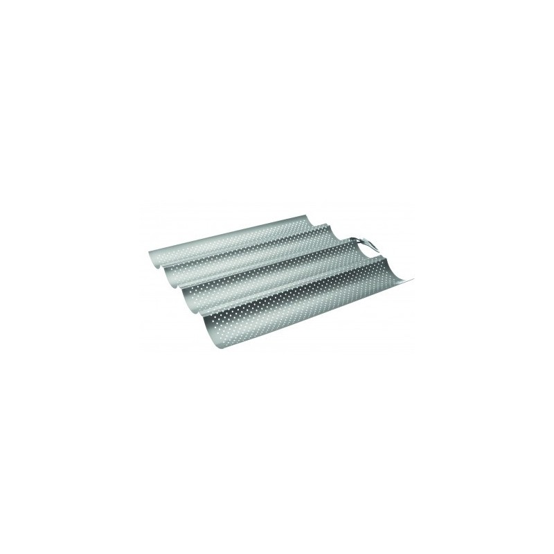 El molde para baguettes y tejas de Ibili está fabricado en acero y acabado con un recubrimiento antiadherente. Gracias a su base agujereada permite hornear el pan sin que la humedad se acumule por abajo, y de este modo queda crujiente por ambos lados.El molde para baguettes y tejas de Ibili es ideal para un uso doméstico, sobre todo en hogares que están empezando a experimentar con el pan, las masas y la repostería al horno. Para evitar estropear la capa antiadherente, es importante no raspar la superficie del molde con cuchillos o con piezas metálicas, y lavarla con suavidad, con un paño húmedo. También puede lavarse en lavavajillas